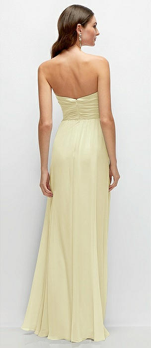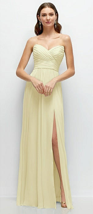 Strapless Pleated Surplice Chiffon Maxi Dress with A-Line Skirt in butter yellow