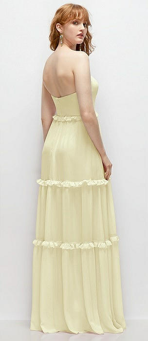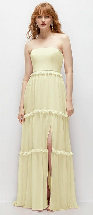 Strapless Chiffon Maxi Dress with Tiered Micro Ruffle Full Skirt in butter yellow
