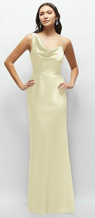 One-Shoulder Draped Cowl A-Line Satin Maxi Dress in butter yellow