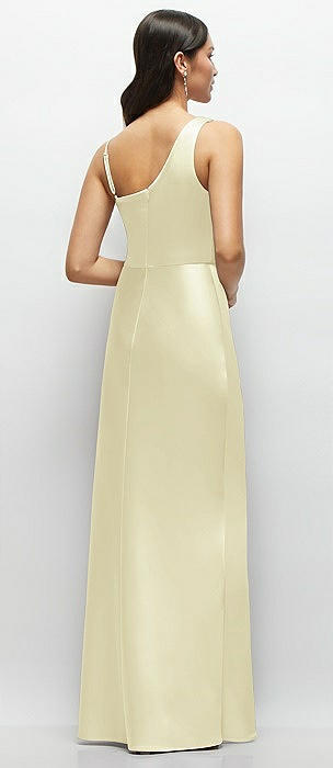 Satin Twist Bandeau One-Shoulder Bias Maxi Dress in butter yellow
