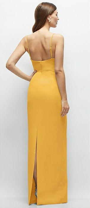Corset-Style Crepe Column Maxi Dress with Adjustable Straps in NYC yellow