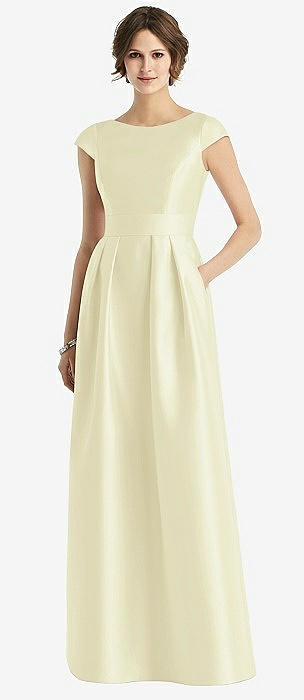 Cap Sleeve Pleated Cocktail Dress with Pockets in butter yellow