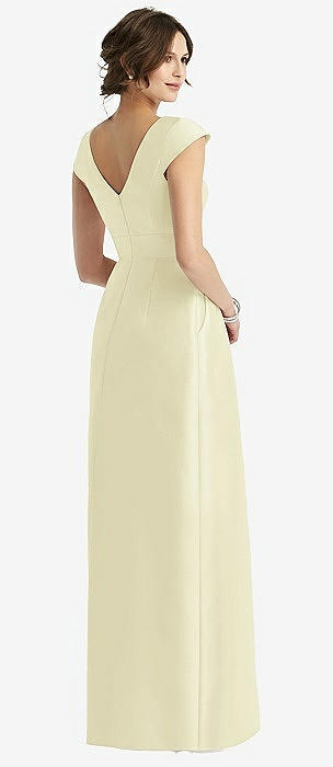 V-Neck Halter Satin Trumpet Gown in butter yellow