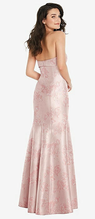 Bow Cuff Strapless Floral Princess Waist Trumpet Gown in bow and blossom print