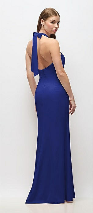 Tie Halter Open Back Trumpet Gown in cobalt blue