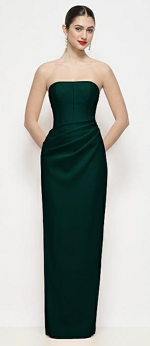 Strapless A-Line Stretch Satin Maxi Dress in evergreen