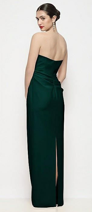 Strapless Asymmertical Drop Waist Corset Maxi Dress with Column Skirt in evergreen