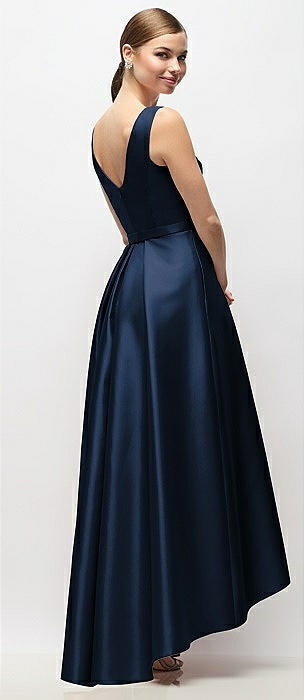 Sleeveless Pleated Skirt High Low Dress with Pockets in midnight navy