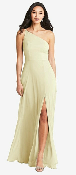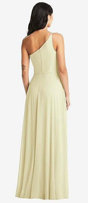 One-Shoulder Draped Chiffon Maxi Dress - Dani in butter yellow