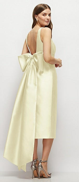 Scoop Neck Corset Satin Midi Dress with Floor-Length Bow Tails in butter yellow