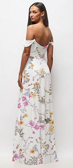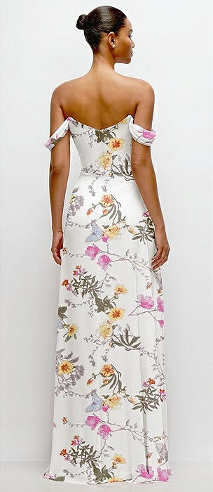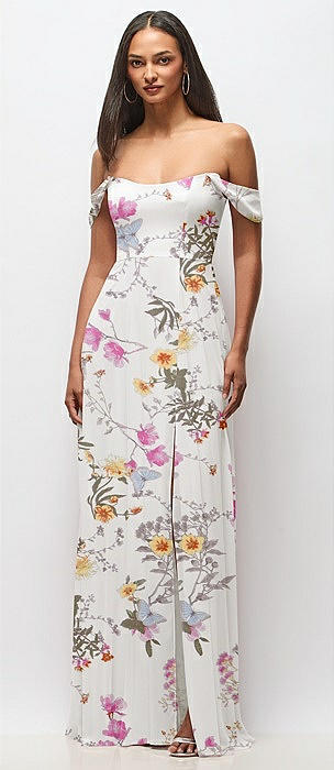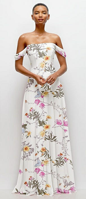 Off-the-Shoulder Draped Neckline Maxi Dress in butterfly botanica ivory