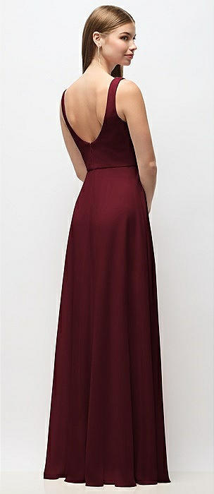 Scoop Neck Tank Strap Chiffon Maxi Dress in cabernet