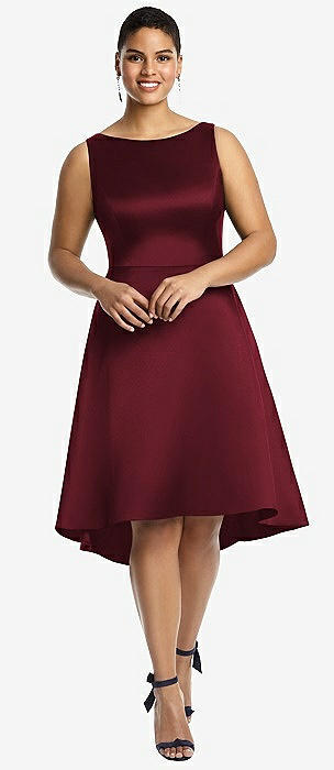 Bateau Neck Satin High Low Cocktail Dress in cabernet