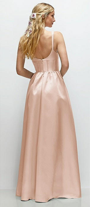 Scoop Neck Inset Corset Satin Maxi Dress with Pockets in cameo