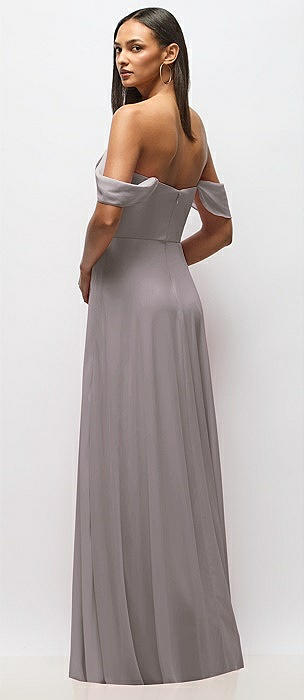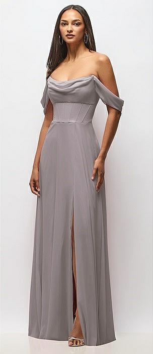 Chiffon Corset Maxi Dress with Removable Off-the-Shoulder Swags in cashmere gray