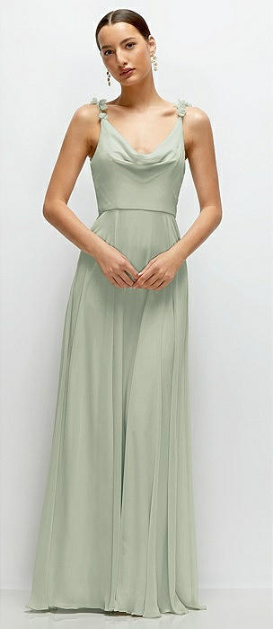 Cowl Neck Chiffon Maxi Dress with Hand-Worked Petal Straps in celadon