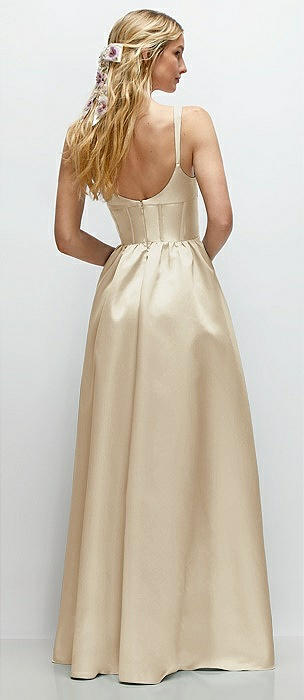Strapless Bias Cuff Bodice Satin Gown with Pockets in champagne
