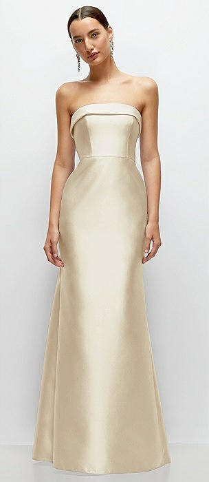Strapless Cuff Neckline Satin Trumpet Gown in champagne