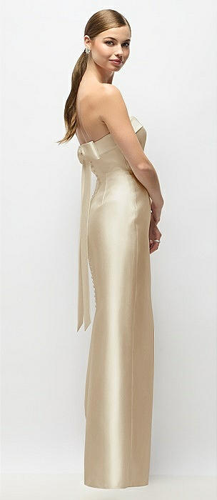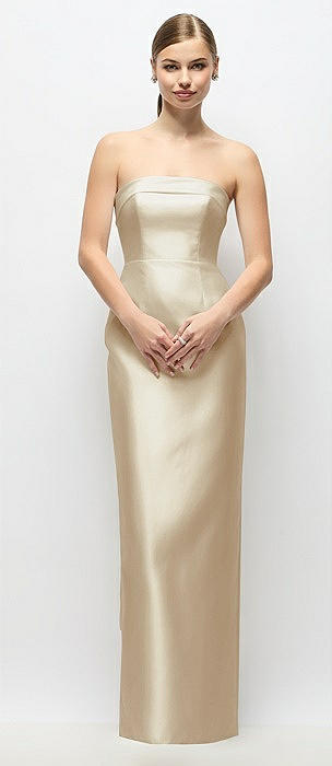 Strapless Cuff Satin Maxi Dress with Column Skirt & Back Bow in champagne