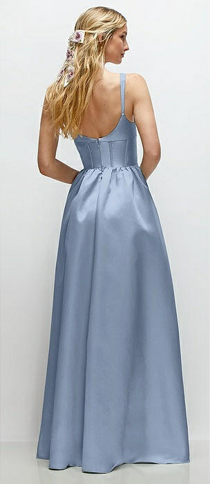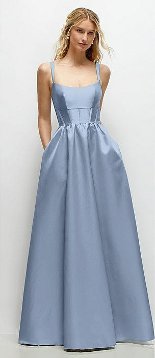 Scoop Neck Inset Corset Satin Maxi Dress with Pockets in cloudy
