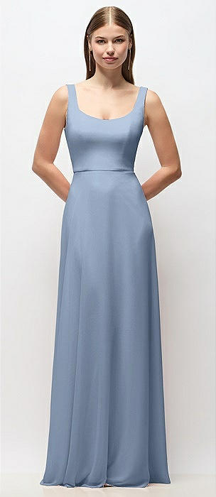 Scoop Neck Tank Strap Chiffon Maxi Dress in cloudy
