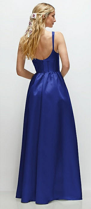 Scoop Neck Inset Corset Satin Maxi Dress with Pockets in cobalt blue