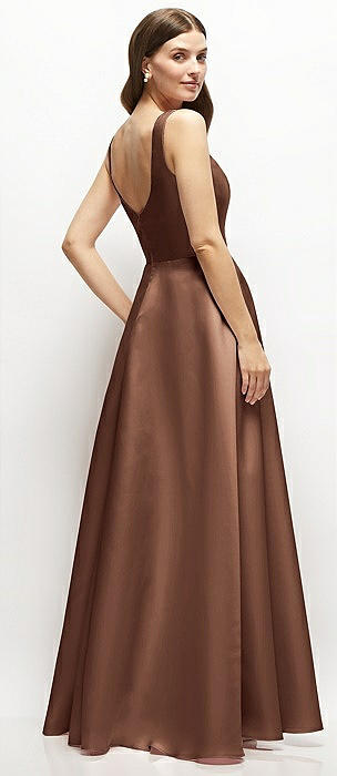 Satin Square Neck Fit and Flare Maxi Dress in cognac