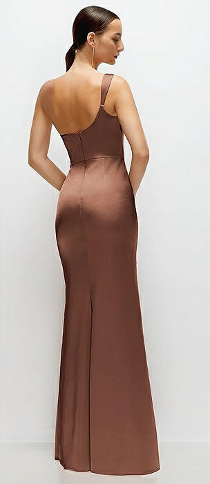 Asymmetrical Open-Back One-Shoulder Stretch Satin Mermaid Dress in cognac