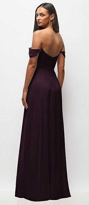 Off-the-Shoulder Draped Neckline Maxi Dress in deep plum