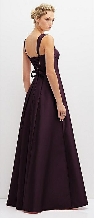 Lace-Up Back Bustier Satin Dress with Full Skirt and Pockets in deep plum