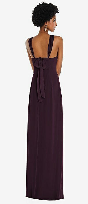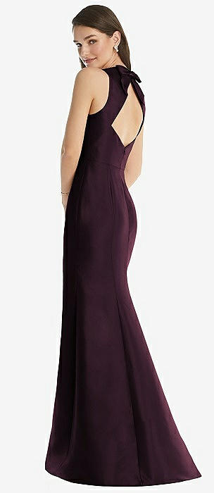 Sleeveless Satin Trumpet Gown with Bow at Open-Back in deep plum