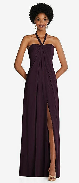 Draped Chiffon Grecian Column Gown with Convertible Straps in deep plum