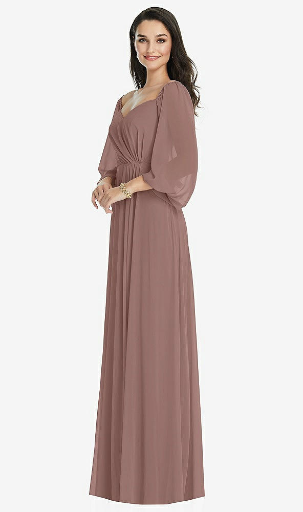 Off-the-Shoulder Puff Sleeve Maxi Dress with Front Slit in Sienna