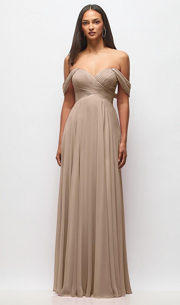 Off-the-Shoulder Draped Chiffon Maxi Dress in Topaz
