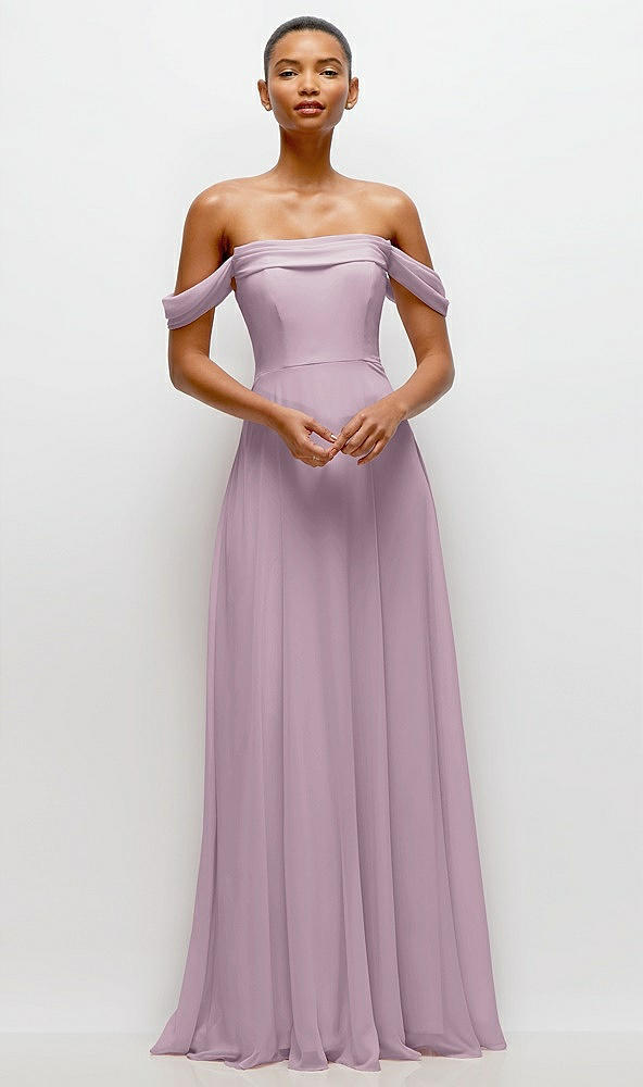 Off-the-Shoulder Draped Neckline Maxi Dress in Suede Rose
