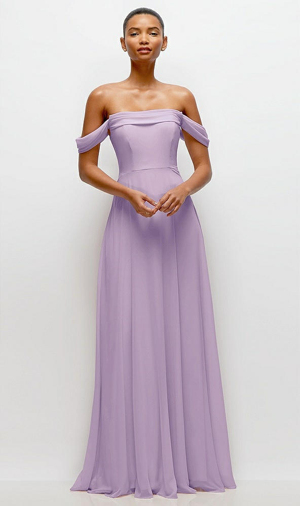 Off-the-Shoulder Draped Neckline Maxi Dress in Pale Purple