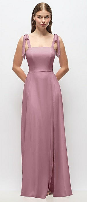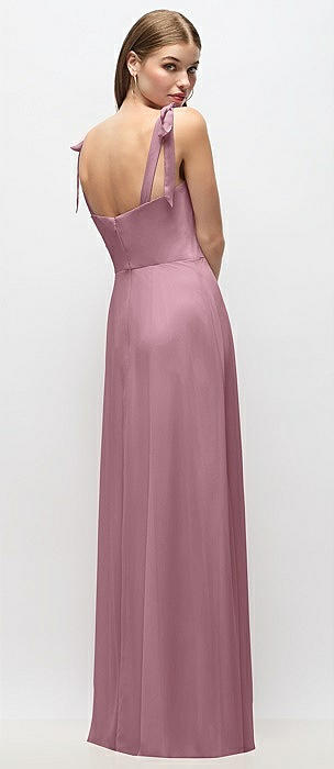 Tie-Shoulder Chiffon Maxi Dress with Front Slit in dusty pink