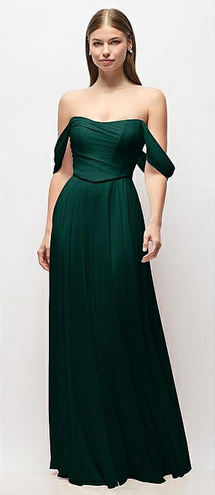 Off-the-Shoulder Basque Corset Chiffon Maxi Dress in evergreen