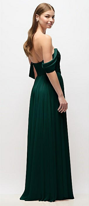 Off-the-Shoulder Crepe Column Maxi Dress with Bow-Pinch Detail in evergreen