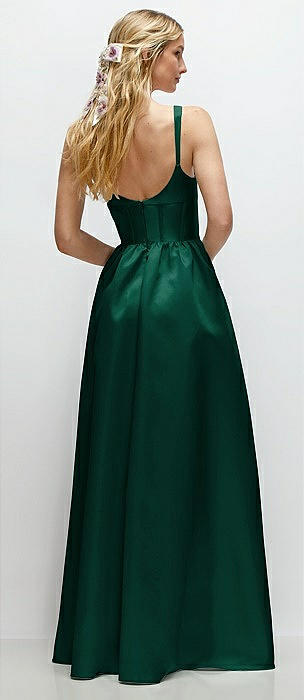 Strapless Bias Cuff Bodice Satin Gown with Pockets in hunter green