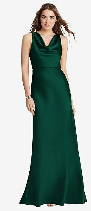 Cowl-Neck Draped Wrap Maxi Dress with Front Slit in hunter green