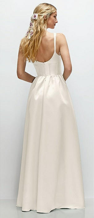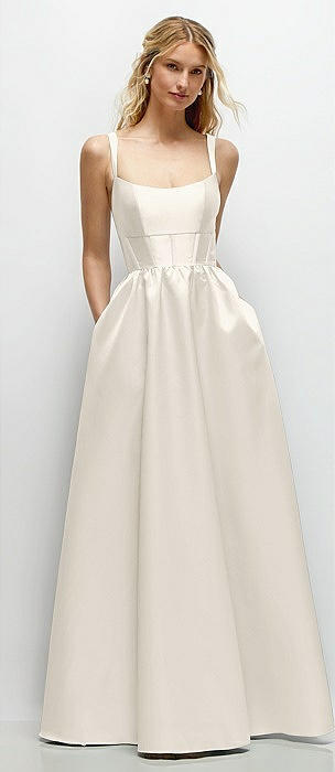 Scoop Neck Inset Corset Satin Maxi Dress with Pockets in ivory