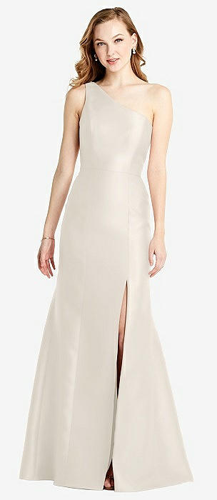One-Shoulder Draped Twist Empire Waist Trumpet Gown in ivory