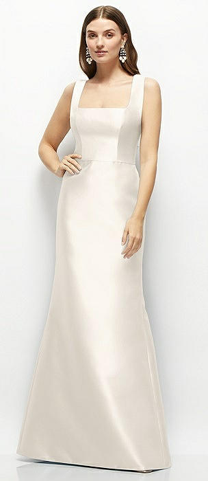 Satin Square Neck Fit and Flare Maxi Dress in ivory