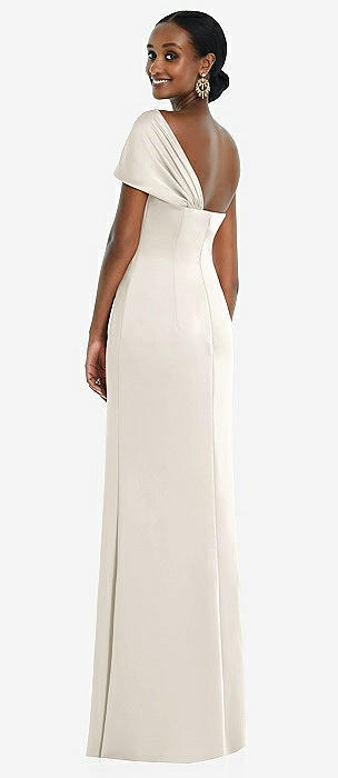 Draped One-Shoulder Satin Trumpet Gown with Front Slit in ivory