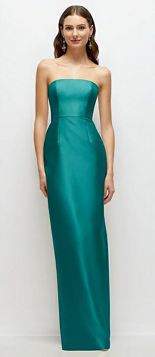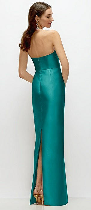 Strapless Cat-Eye Draped Bodice Satin Tumpet Dress in jade