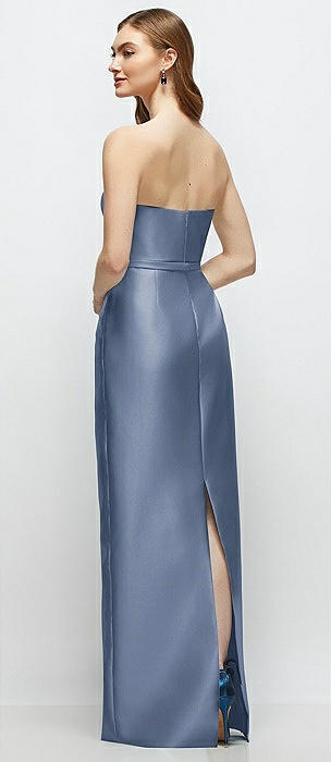 Strapless Satin Column Dress with Removeable Watteau Train in larkspur blue