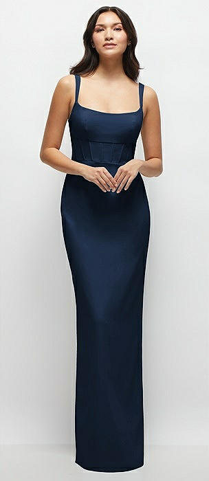 Corset Midriff Crepe Column Maxi Dress in midnight navy
