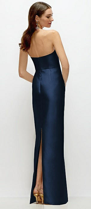 Strapless Satin Column Dress with Back Slit in midnight navy