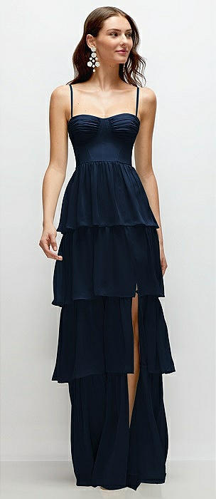 Bustier-Style Chiffon Tiered Ruffle Maxi Dress with Adjustable Straps in midnight navy